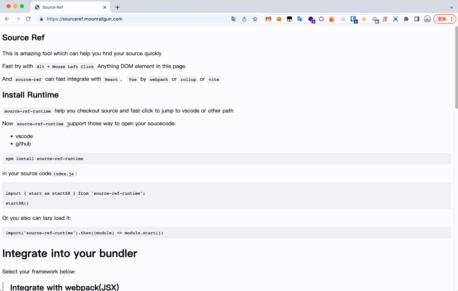 source-ref 是一款通过网页点击快速定位到源码的工具,用于解决从视觉上快速定位到所在源码具体位置。与现有的devtools(vue-devtools/react-developer-tools)的源码定位互补